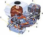 - 4-тактный бензиновый двигатель, произведенный по лицензии всемирно известного японского производителя, с 5 перепускными каналами для точного послойного распределения заряда горючей смеси с верхним расположением клапанов;
