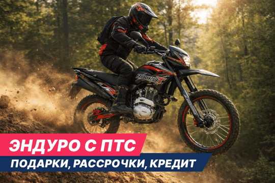 Если вы давно присматриваетесь к эндуро мотоциклу, сейчас подходящий момент для покупки. На популярные модели ROCKOT действуют выгодные условия рассрочки и кредита, а также подарки к покупке.